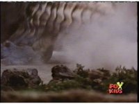 Cuts prior sequence of monster tail-bashing, and flame-breathing DT & GM. |