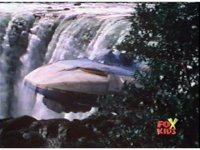Zenith Carrierzord flies out from within a waterfall, into the sky. |