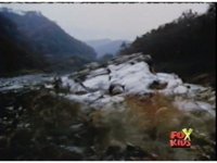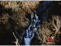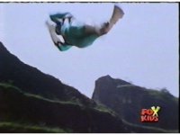Green is shaken up, as the ground below him rises up, causing him to fall off the side, plummeting down toward the river below. |