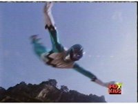 Green falls off the side, plummeting down toward the river below, but is saved by his Jet Jammer. |