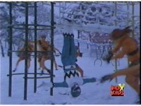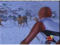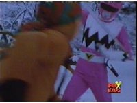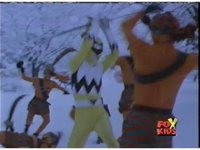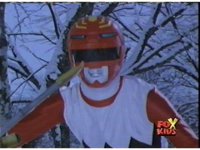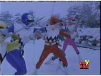 The Rangers unsheathe their Quasar Sabers and charge forth through the snow. |