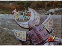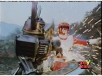 Centaurus Megazord skates forth, its Rhino Galactabeast form briefly visible. |
