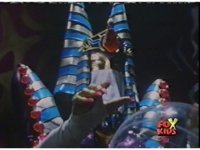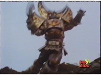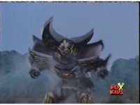 Nightmare rushes forth, ducks under Galaxy Megazord's Saber then sparkily beats on it, before kicking it over. |