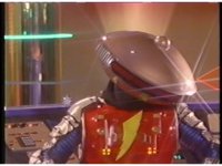 Alpha, back to console, looks to our left, moving arms. Zordon watches, Alpha says something while appearing happy. |