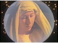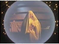 Close on the Virgin Mary, blinking as she looks down upon her child, who would one day grow up to be the White Ranger. |