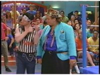 Ringside, Skull points both hands at Bulk, turns away from him, and begins to leave. |