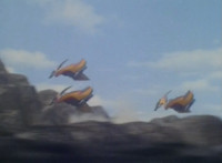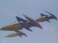 Three Magnavore Jet Fighters swoop down in formation from our slight left. |