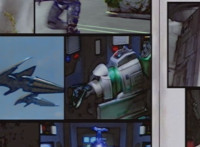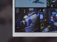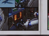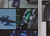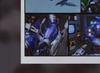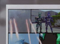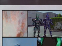 Altered to fit comic book panel; cuts start to remove visibility of Blue & Red; what's funny is this brief shot is the only footage used from Sword Warrior's source episode. |