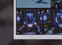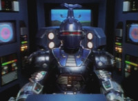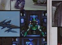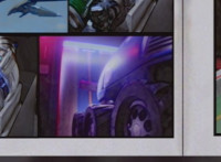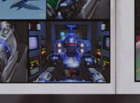 Blue nod-talks, then grips the controls and pulls them out, causing the door before his Blue Stinger AV to open, then roll out from it. |