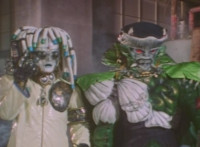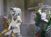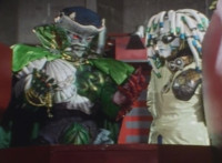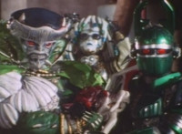 Red & Green, holding Sonic Lasers, turn and get sparkily slashed by Typhus. |