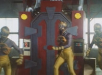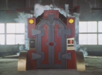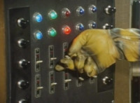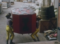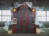 The box is closed around the sleeping Fire Cat by the Scabs, who then raise it into a standing position, before sliding it into the accelerator machine. Scabs work the controls, causing snaps to close around the box, keeping it in place, before the Scabs flee from the area. |