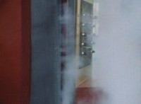 Close on the machine spewing smoke some more. |