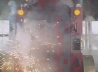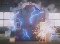 The accelerator machine sparks, smokes, and shakes. |