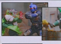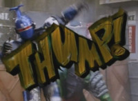 "Thump!" sound effect blurb added to shot 2; shot 2 is shortened heavily, removing Green taking over for Blue in fighting Typhus. |