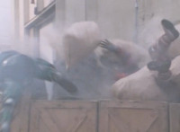 Red & Green rush into the room and start fighting Scabs. |