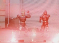 Red & Green emerge from the smoke unscathed, posing and nod-talking. |