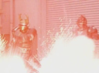 Cuts follow-ups of Fire Cat shooting energy flames about, and lighting a Scab's butt on fire. |