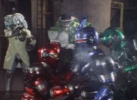 As Typhus also reacts, Noxic reaches out, then facepalms. Fire Cat stands back up, flailing about as he comes between the BeetleBorgs and the two Magnavores, and starts unleashing energy flames that burst all around them. Blue flexes his arms downward. |