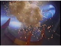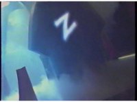 Closer repeat of explosion, revealing the back of Lord Zedd's throne, the Z upon it glowing. |