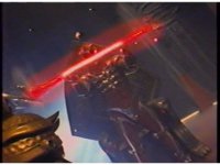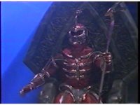Lord Zedd stands at throne, turning from our left to our right as shot zooms in, and he emits his red ray vision. |