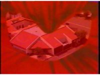 Serpentera against the moon through to Serpentera flying down in space. Fades into close pan on Serpentera charging up through to Tor scuttling away. Then from Serpentera firing through to pass behind pyramid thing being fried. Then from side shot of Serp frying pyramid thing through to red destruction spot expanding in city. |