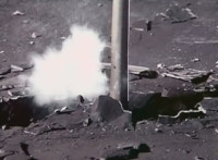 Destructasphere's blade finishes cutting through cement, then retracts. |