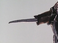 US replaces follow-ups of MR stabbing Beetletron in the neck sparkily with him firing his saber at him. |