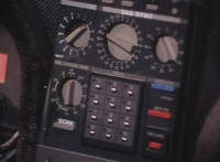 Close-up pan across Magno's dashboard, from her AC to her blinky red dot KITT-esque indicator. |