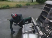 Cuts follow-up of cave collapsing then Magno driving underwater, then Masked Rider & Beetletron fighting some more, then Magno driving over various terrains. |