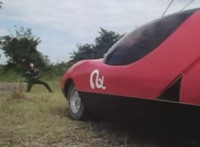 "Suzuki" matted out of shot 4; cuts follow-ups of Cyclopter driving in and talking. |