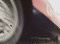 Headlights flashing added to shot 1; cuts final shot before he puts his hands on her hood, then cuts follow-ups of him turning around to see Beetletron. |