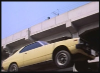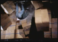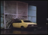 Cuts follow-ups of car smashing through cardboard boxes. |