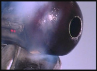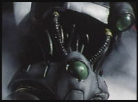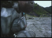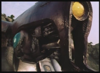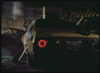 Shot 1 cuts before Japanese text appears onscreen; cuts follow-up zoom in on Larvatron's red eye. |