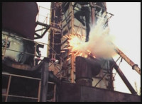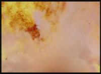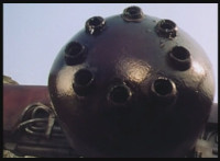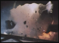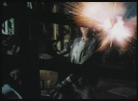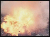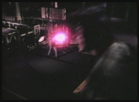 Zoom out from Larvatron as he's struck with an energy bolt, causing him to shimmer with golden energy, before shot switches to a close-up of a massive explosion. |