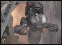 Eyeflashing added; cuts follow-ups of sun shining and MR's body armor gleaming to life. |