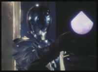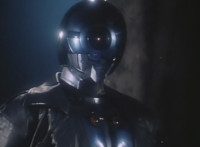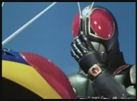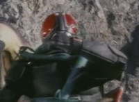 Cuts follow-ups of Masked Rider talking and posing a bit. |