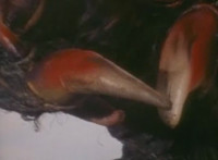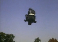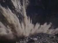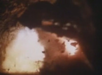 Cuts follow-ups of MR landing on other side, then fighting Gork. |