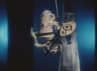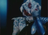 Close on Gork, talking, as he raises his left fist, then spreads arms while wiggling fingers. |