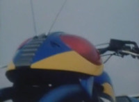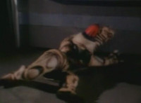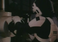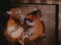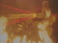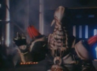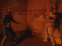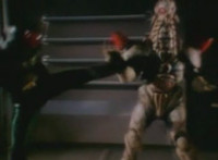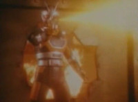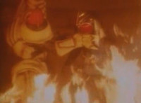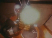Cuts before Super Gold fires upon console in the background; cuts follow-ups of Super Gold returning into Masked Rider, then fighting Firebug and stabbing him with his Electro Saber. |