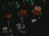 Pan across the workstation near the tubes, as Commandoids operate the controls. |