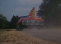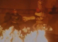 Firebug crosses arms before the flames. Zoom out from Cyclopter as he talks to Count Dregon and company. Then zoom in on Firebug posing behind the fire. |