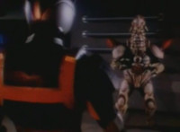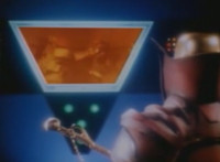 Cuts follow-up due to Japanese text, then a shot of Cyclopter talking to Dregon. |