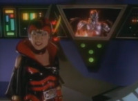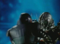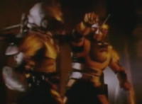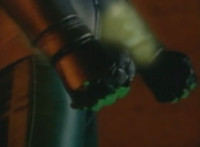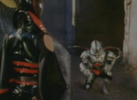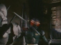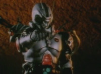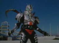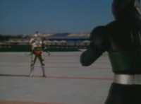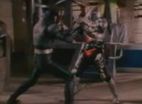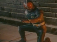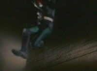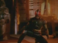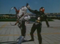 Close on Masked Rider reacting. |
