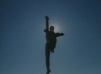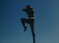Masked Rider flips over the camera. |