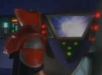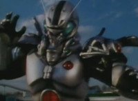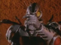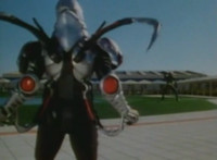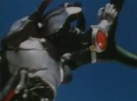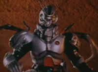 Robosect latches onto Masked Rider with his back pinchers, filling him up with a red glow that causes him to lose hold on Robosect, before falling into the vortex. Robosect fires a few lasers at him, bursting him, though he continues to float in the portal, talking back to his enemy. |