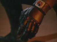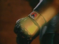 Close-up of Masked Rider's Ecto Accelerator flashing with power. |