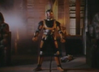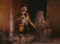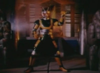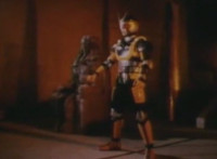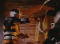 Zoom in on Super Gold standing still, from two side angles. Robosect points at him, as he stands continually still, even during rapid cut-ins. |