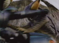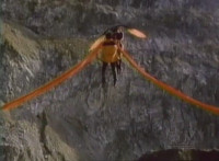 Hydrasect flies at Masked Rider, grabbing him against his will, and dragging him through the air just off the ground. |