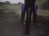 Masked Rider turns Combat Chopper around and resumes driving him. |