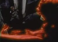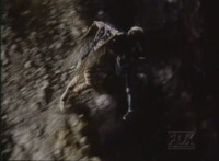 US Masked Rider and pillar superimposed into shot; red glow also added to monster. |
